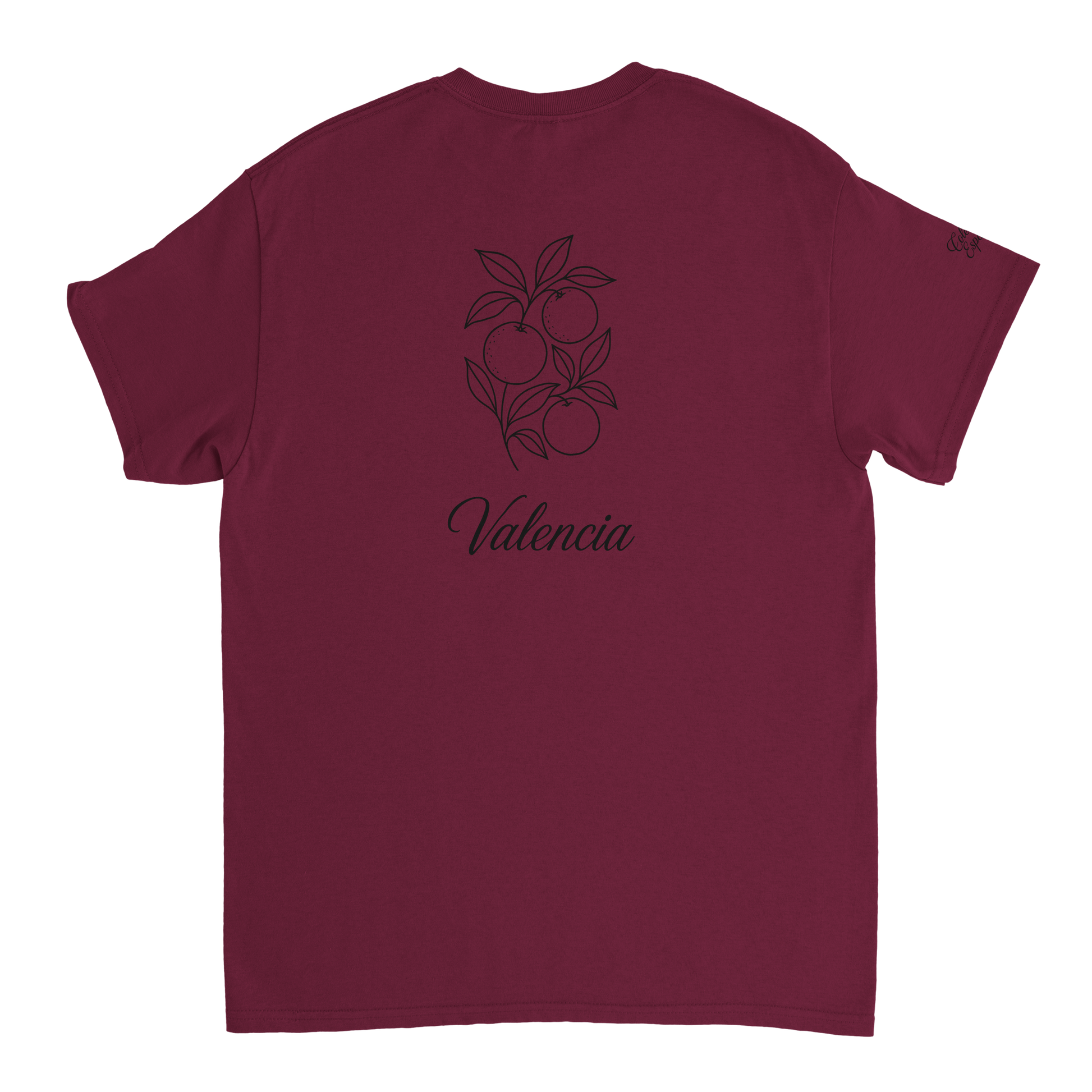 Rücken: Orangen-Illustration + Schriftzug „Valencia“